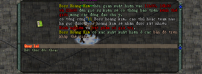 Thời gian Boss xuất hiện vào 9h và 21h hằng ngày.